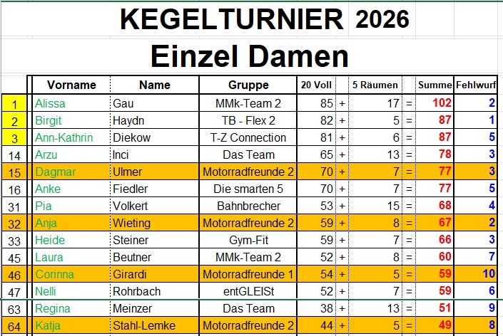 20.03.2026 Teilnahme am Kegelturnier im SSB Waldaupark